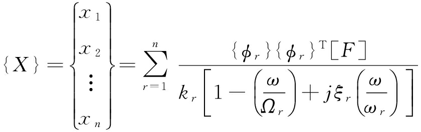 将式(2)代入式(1),求解微分方程,得到位移响应为