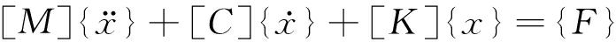 式中:[M]、[C]、[K]分别为质量、阻尼及刚度矩阵;{x}为位移;{F}为输入。