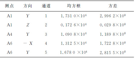对处理过的连续采煤机截割臂3个测点的振动加速度信号在时域上进行计算,得到3个测点的均方根和方差,见表3。
