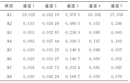 分析表4,通过小波包分解计算不同测点能量值的总和可以得到:Y方向上,截割臂中间位置的A6振动能量最小,而截割臂与机架铰接处的A1振动能量最大;A1的Z方向上能量值最小。这与前面的时域分析结果一致。