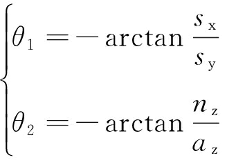 式(4)中,sx,sy,nz,az均为已知量,因此可根据截割头的位姿数据得出关节变量θ1,θ2。