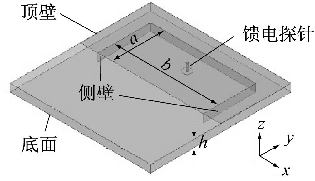 半模衬底集成空腔天线由半个矩形空腔和1个开口面构成,如图1所示,其中a,b,h分别为空腔的宽、长、高。由于空腔高度非常小,其内部电场分布可认为仅存在z方向上的分量。