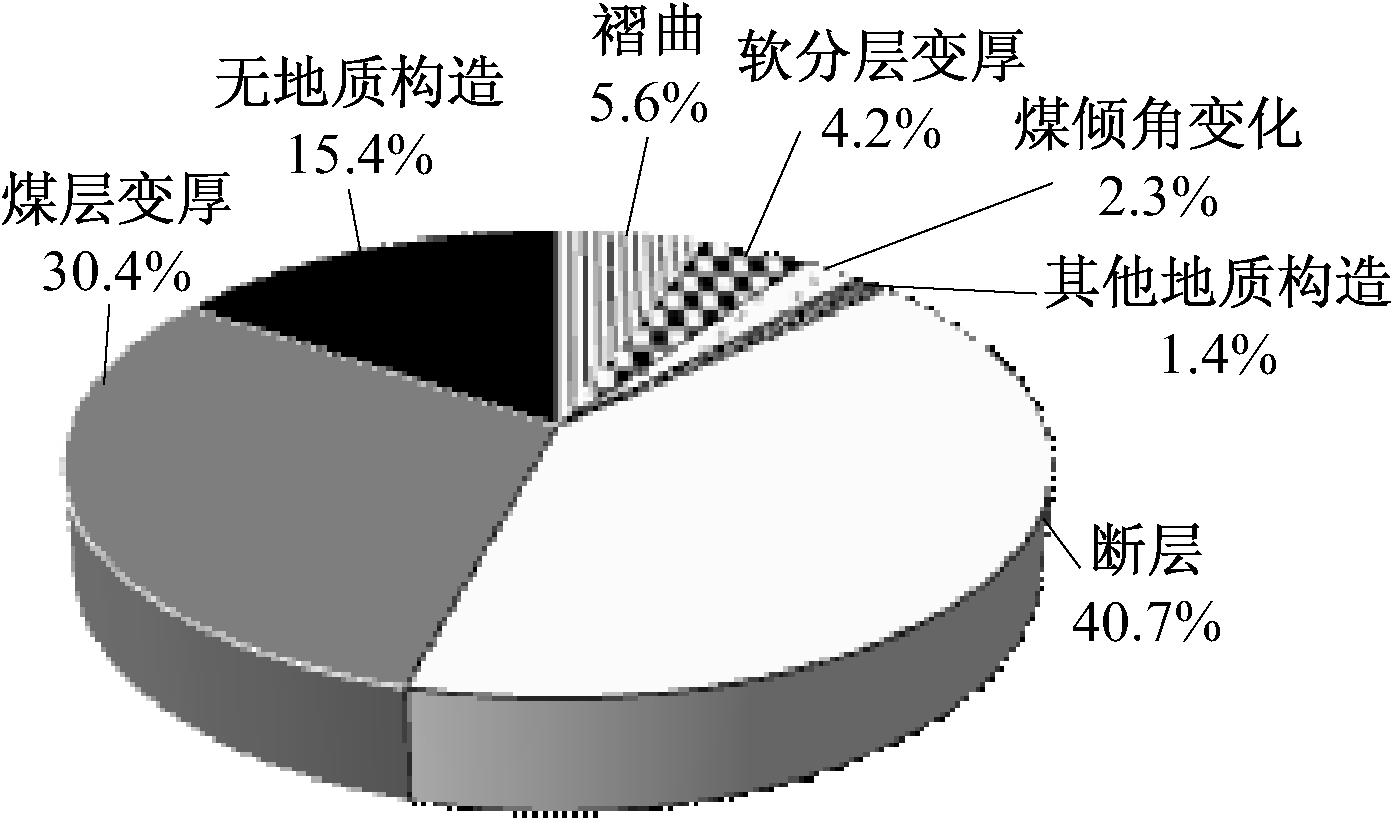 图5 贵州矿区煤与瓦斯突出事故地质构造统计