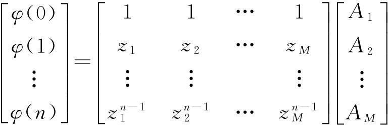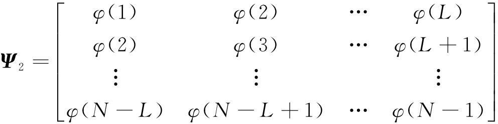 利用Ψ1,Ψ2构成矩阵束Ψ2-LΨ1。由矩阵束原理可知,信号极点zi即为Ψ2-LΨ1的广义特征值,因此求解zi即可得到[Ψ1Ψ2]的广义特征值: