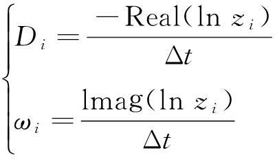 的特征值,进而可得zi;根据zi=exp[(-Di+jωi)Δt]可得第i个信号的衰减因子Di及其角频率ωi: