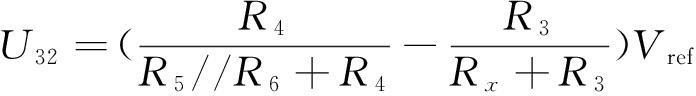 式中:Rx为被测铂电阻阻值;Vref为电桥共模电压。
