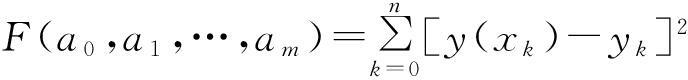 ,对F(a0,a1,…,am)求偏导数得到(a0,a1,…,am),使得m次多项式拟合的曲线偏差平方和最小,即可求得y(x)表达式[4-5]。