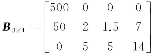 由式(12)处理表1数据可得3×4阶煤岩冲击倾向性评价标准矩阵: