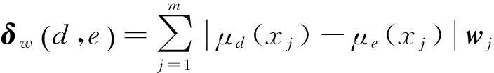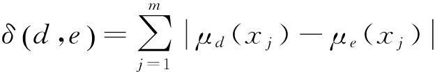 海明距离法在求评价对象与标准对象的相似程度上可有效提高评价结果的分辨率。假设评价对象d和标准对象e均包括m个评价因子x1,x2,…,xm,且评价对象d对xj的隶属度为μd(xj),标准对象e对xj的隶属度为μe(xj),则评价对象d与标准对象e之间的海明距离为