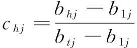 式中:bhj为第j个评价因子的h(h=1,2,…,t)级评价标准值;chj为bhj的隶属度。