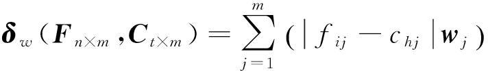 由此可得评价对象隶属度矩阵与评价标准隶属度矩阵之间的加权海明距离: