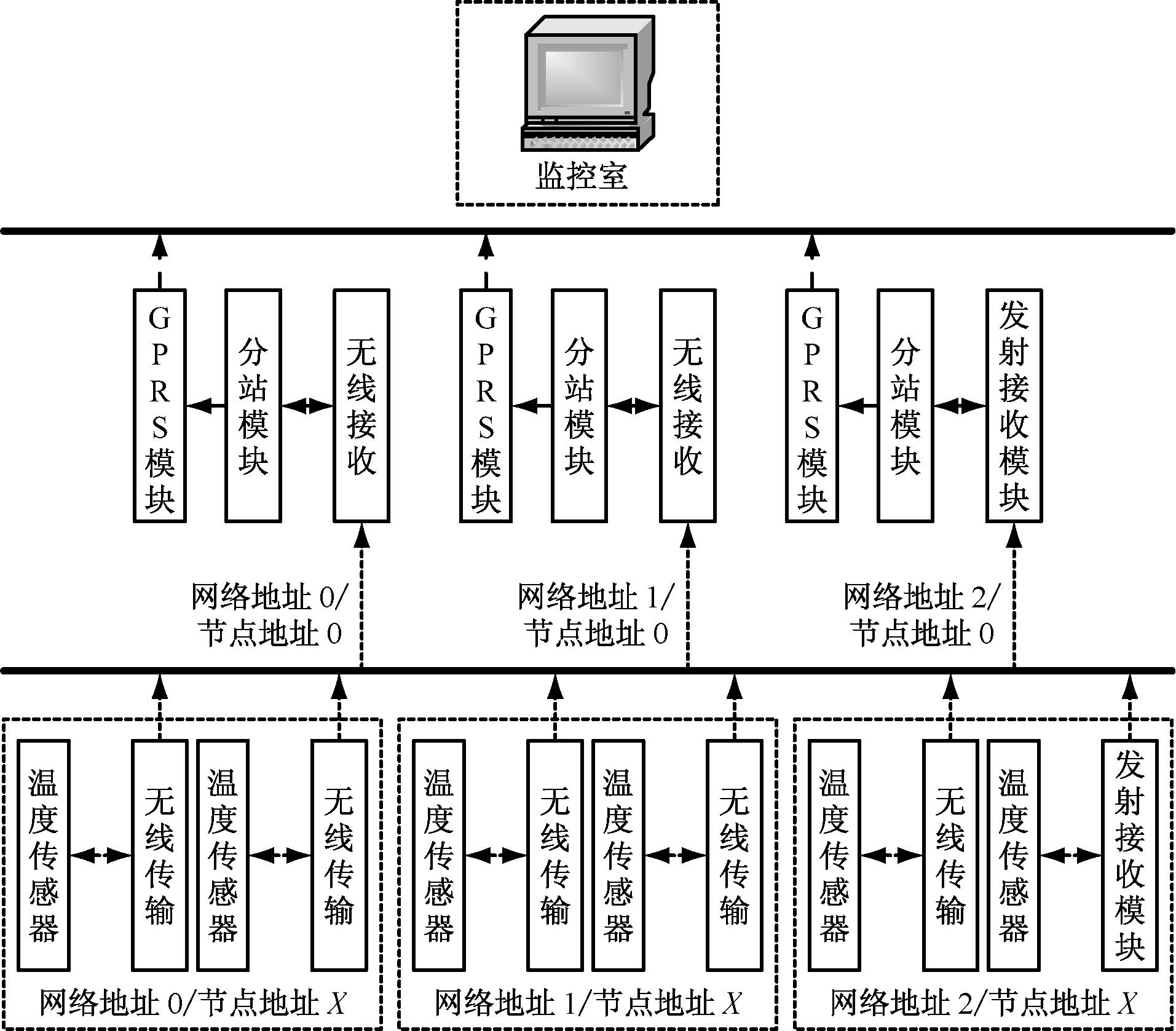 煤炭储存无线测温系统主要包括传感器模块和分站模块2个部分,整体结构如图1所示。