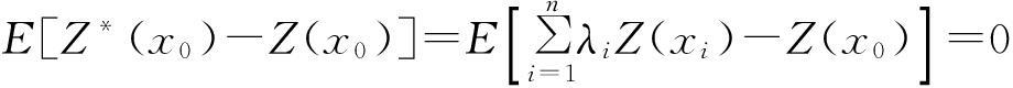 在保证无偏估计和最小估计方差的前提下,利用Kriging插值算法求解式(1)中的权重系数。其中无偏估计为