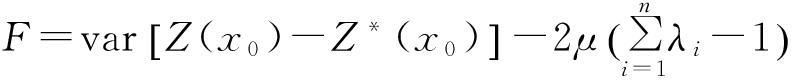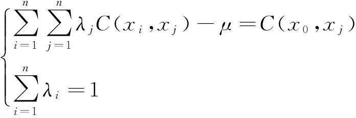 然后分别对λi和μ求偏导,得到普通Kriging方程组[7]: