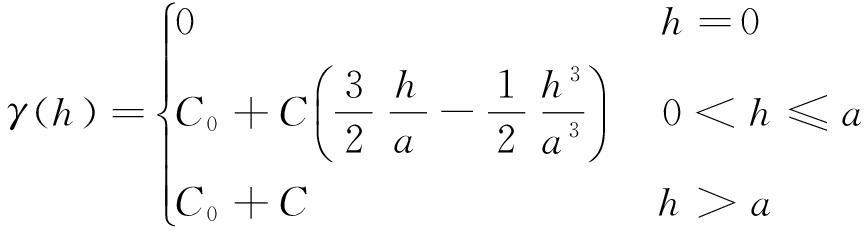 式中:C0为块金常数,表示参数随机性变化的部分,C0越小,参数空间相关性越强,随机性越弱,C0越大,参数空间相关性越小,随机性越强;C为拱高,表示参数结构性变化的部分;C0+C为基台值,反映参数在数值上最大的变化幅度;a为变程,表示参数具有空间相关性范围,反映参数空间变化的速度大小,a越小,空间相关性范围越小,表示参数的空间变化速度越大,a越大,空间相关性范围越大,表示参数的空间变化速度越小[8]。