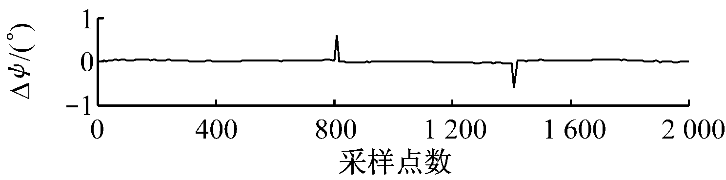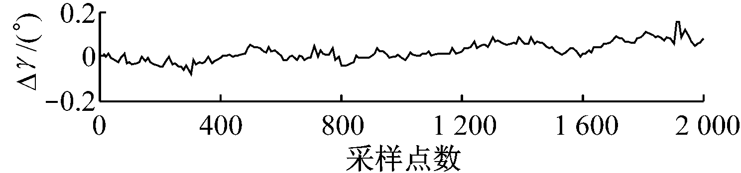 采煤机姿态角误差如图5所示。从图5可看出,采煤机姿态角在航向角、俯仰角、横滚角3个方向的误差最大值分别为0.602 2,0.031 9,0.154 2°,采煤机的姿态角具有很稳定的定位精度。综合采煤机的位置误差和姿态角误差可知,基于Rodrigues算法的采煤机捷联惯导定位能够满足井下采煤机定位精度要求。
