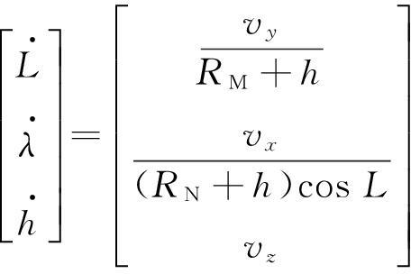式中:L,λ,h分别为采煤机所在位置的纬度、经度和高度;vx,vy,vz分别为采煤机在导航坐标系下各方向的速度分量;RM,RN分别为当地子午圈半径和卯酉圈半径。