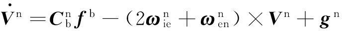 式中:fb为比力向量,即捷联惯导的加速度计输出,通过姿态转换矩阵把其从载体坐标系转换到导航坐标系;