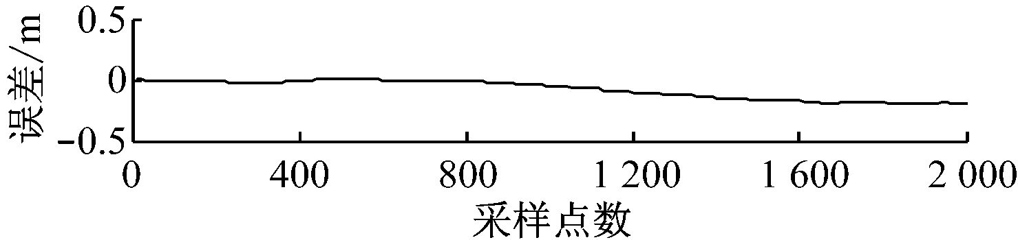 由于捷联惯导在高度通道具有发散性,所以仿真时根据采煤机的运动特性,限定采煤机在高度方向的速度最大值为0.05 m/s。
