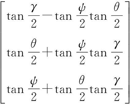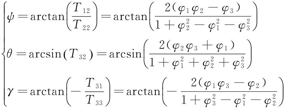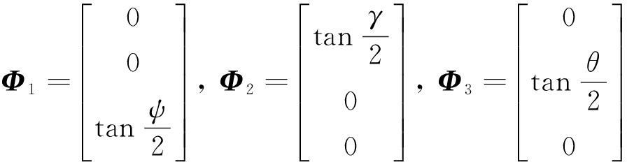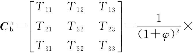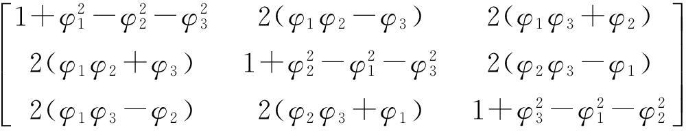 Rodrigues参数Φ包含采煤机的3个姿态角信息,根据Φ得出采煤机载体坐标系(b系)到导航坐标系(n系)之间的姿态转换矩阵Cnb为[5]