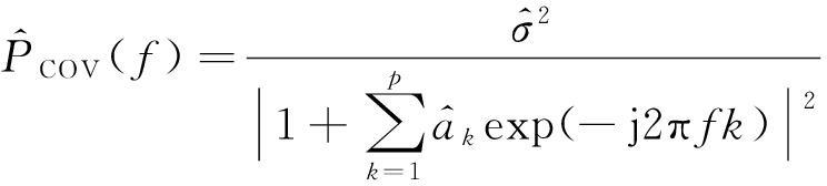 由式(2)可以看出,只要得到AR模型参数(σ2和a1,a2,…,ak),即可求出所分析信号的功率谱P(f)。