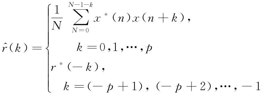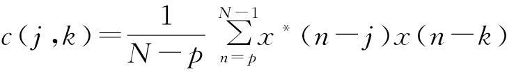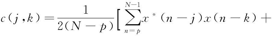 改进Covariance方法是基于前向、后向预测误差平均功率最小准则,其AR模型参数估计矩阵计算与Covariance方法相同,只是自相关估计值计算方法不同,在改进Covariance方法中,自相关估计值为