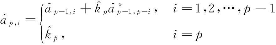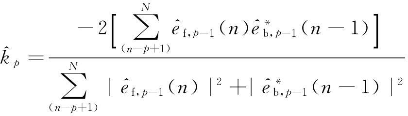 Burg方法利用前向、后向预测误差平均功率最小准则和反射系数对模型参数进行估计。先估计反射系数,再用Levinson 递推公式依次求取AR模型参数。