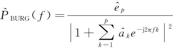 通过式(14)和(15)求得前向、后向预测误差,再由式(13)估计出反射系数,将反射系数代入式(12)求出AR参数,最终可得Burg方法功率谱: