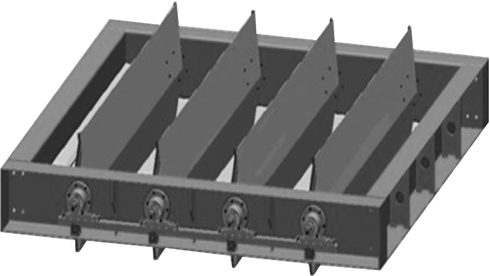 采用通风机不停风倒机控制方案后,传统的依靠钢丝绳提拉和重力降落实现开闭的闸板风门面临巨大挑战,尤其是在带风阻的情况下启闭时,将承受巨大压力,容易卡死,成为控制方案中最不安全的因素。为了提高控制方案的可靠性,笔者所在团队研发了自密式旋叶风门,如图3所示。