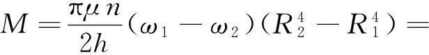 式中:μ为油膜的动力黏度,Pa·s;n为油膜数;h为油膜厚度,m;ω1为主动摩擦片的角速度,rad/s;ω2为从动摩擦片的角速度,rad/s;R1为主、从动摩擦片的接触面内径,m;R2为主、从动摩擦片的接触面外径,m;i为主、从动摩擦片的角速度比,