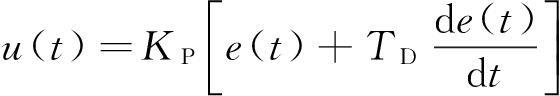 式中:u(t)为PD控制输出量;KP为比例系数;e(t)为PD控制输入量;TD为微分时间常数;t为时间。