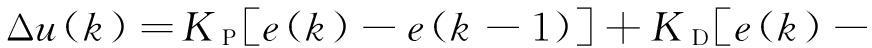式中:Δu(k)为PD控制输出量的增量;e(k),e(k-1),e(k-2)分别为PD控制在k,k-1,k-2采样时刻的输入量;KD为微分系数。