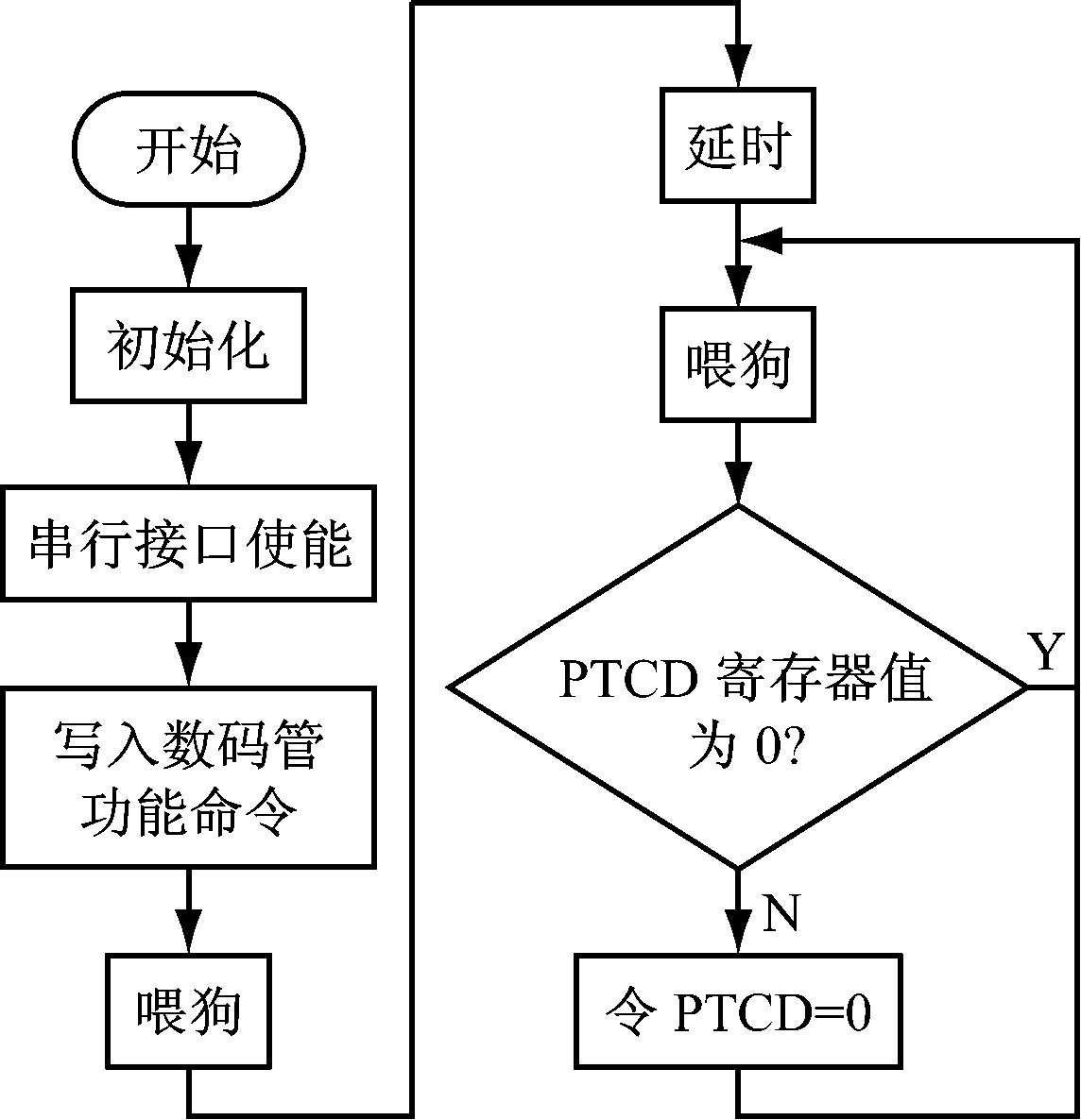 DO主程序流程如图5所示。首先对键盘进行初始化,包括时钟、I/O口、中断等的初始化。然后设置数码管功能,包括设置BCD译码方式、关键盘、开显示等功能。经过一定的延时后进入无限循环等待中断。