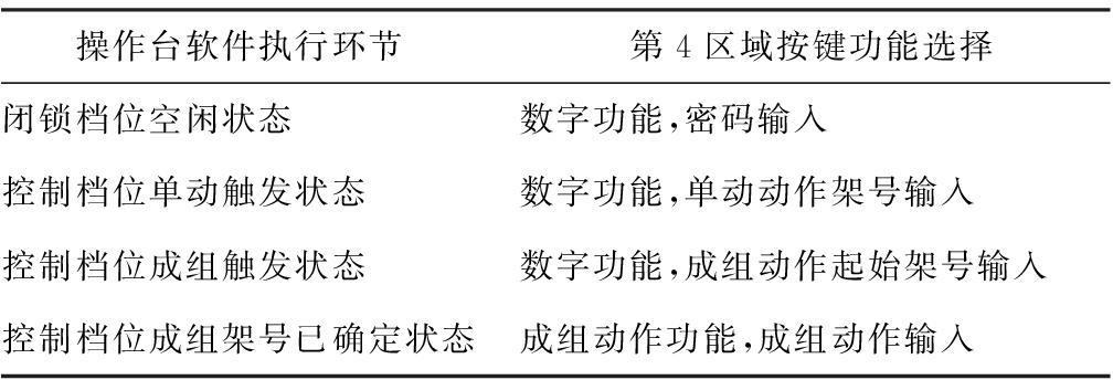 程序根据当前时刻操作台功能执行所处环节而选择相应类型的按键含义,功能选择设置见表1。