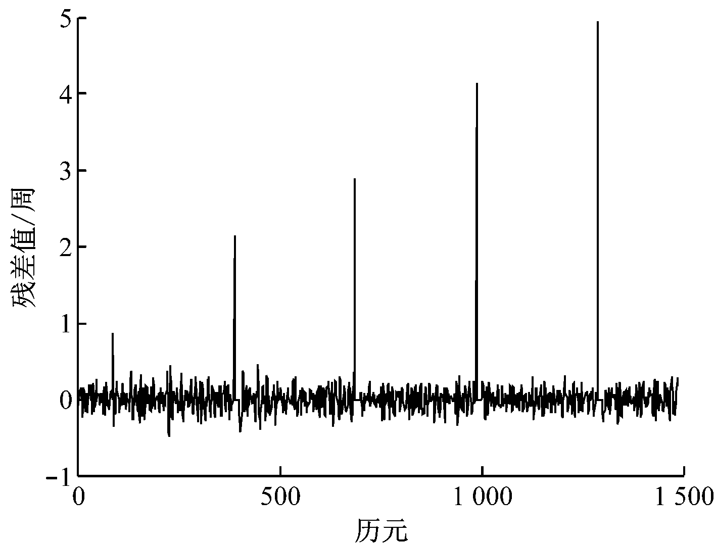 (3) 当观测数据本身带有较大噪声时,周跳探测结果与真实值存在一定误差。因此,如何提高该情况下的周跳探测精度,将是下一步的研究重点。