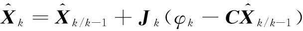 式中:Xk为tk时刻的状态向量;A为tk-1时刻到tk时刻的状态转移矩阵;Wk-1为tk-1时刻的预报模型噪声,其值取决于状态方程表述的好坏,表述得越精确取值越小[10];B为tk-1时刻的动态噪声系数矩阵;φk为tk时刻的载波相位观测向量;C为tk时刻的状态向量系数矩阵;Vk为tk时刻的观测噪声,其方差为σ2,在静态载波相位测量中σ=λ/100[11],即波长的分辨率。