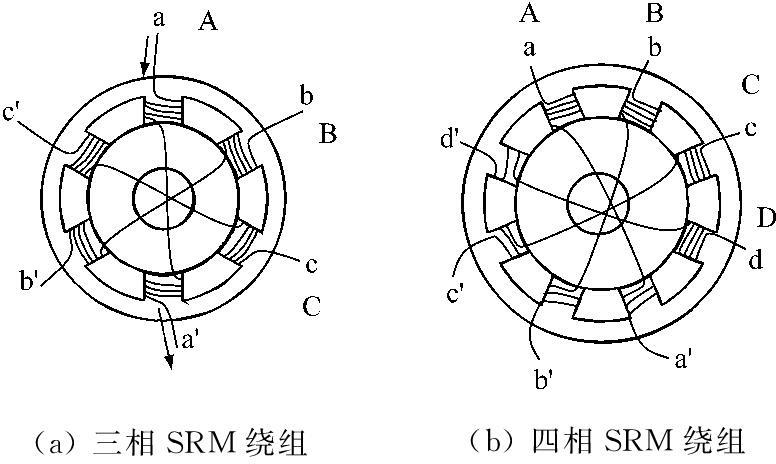 SRM转子无绕组,定子绕组方式分为正向绕组和反向绕组,定子的磁极用N和S表示,按顺时针方向表述定子的磁极分布,正向绕组通电后产生的磁极为NS或SN,反相绕组通电后产生的磁极为NN或SS。根据相间的连接方式,可分为各相独立连接和相间星形连接。