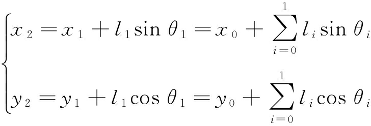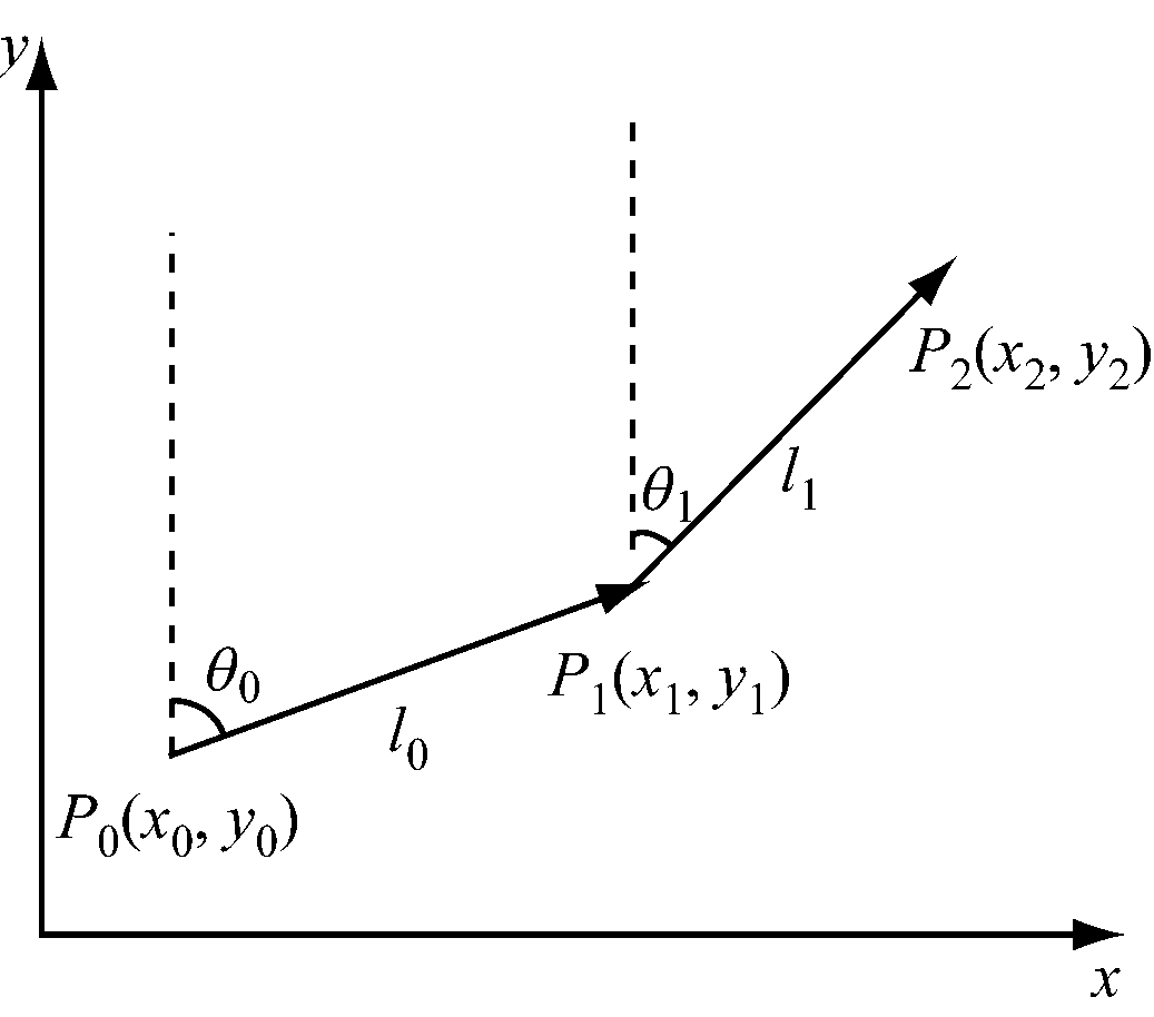 节点以航向角θ1移动距离l1后到达位置点![]()