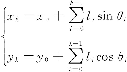 继续按照节点的航迹进行推算,可得到点Pk的坐标为