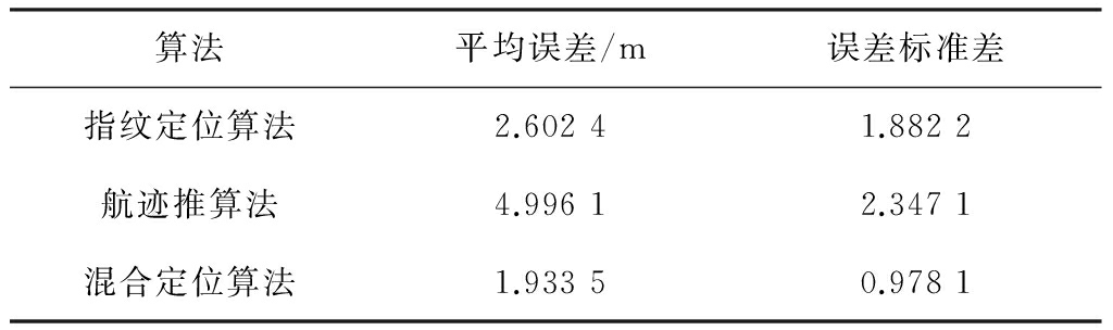经过20组测试得到的定位平均误差和标准差见表1。从表1可以看出,混合定位算法明显减小了定位误差,提高了系统的定位精度和稳定性。