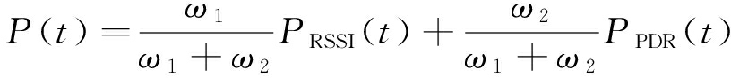 式中:P(t)为t时刻最终定位位置;PRSSI(t)为t时刻RSSI指纹法估计位置;PPDR(t)为t时刻航迹推算估计位置。