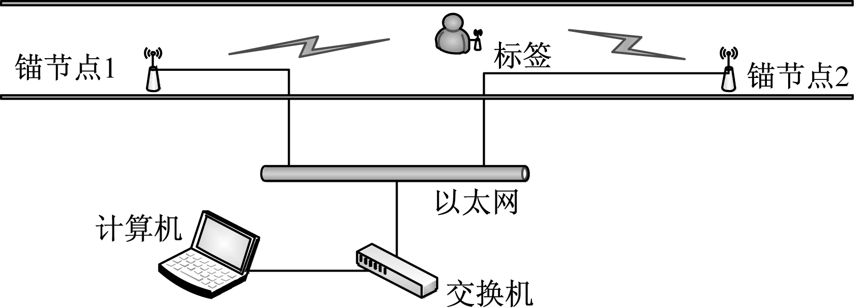 基于指纹膜与航迹推算的井下人员定位系统由定位人员随身携带的标签、锚节点(也称定位基站或基站)、以太网有线传输网络以及上位机解算软件构成,如图1所示。