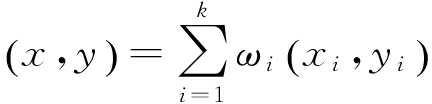 在所有的欧氏距离计算完成后,选取其中K个最小的欧氏距离,其对应的参考点即为目标节点的K个相距最近的参考节点,它们的质心即为目标节点的估计位置。为了进一步提高定位精度,使用基于欧氏距离的加权质心算法计算质心位置(x,y):