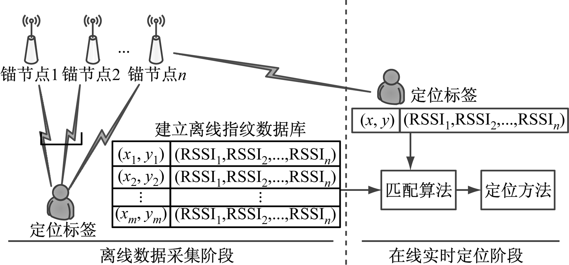 RSSI指纹膜定位过程主要分为离线数据采集阶段和在线实时定位阶段[6],如图3所示。