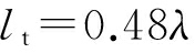 依据对称半波偶极子天线理论(式(2))得出电磁波波长λ与天线总长度lt的关系: