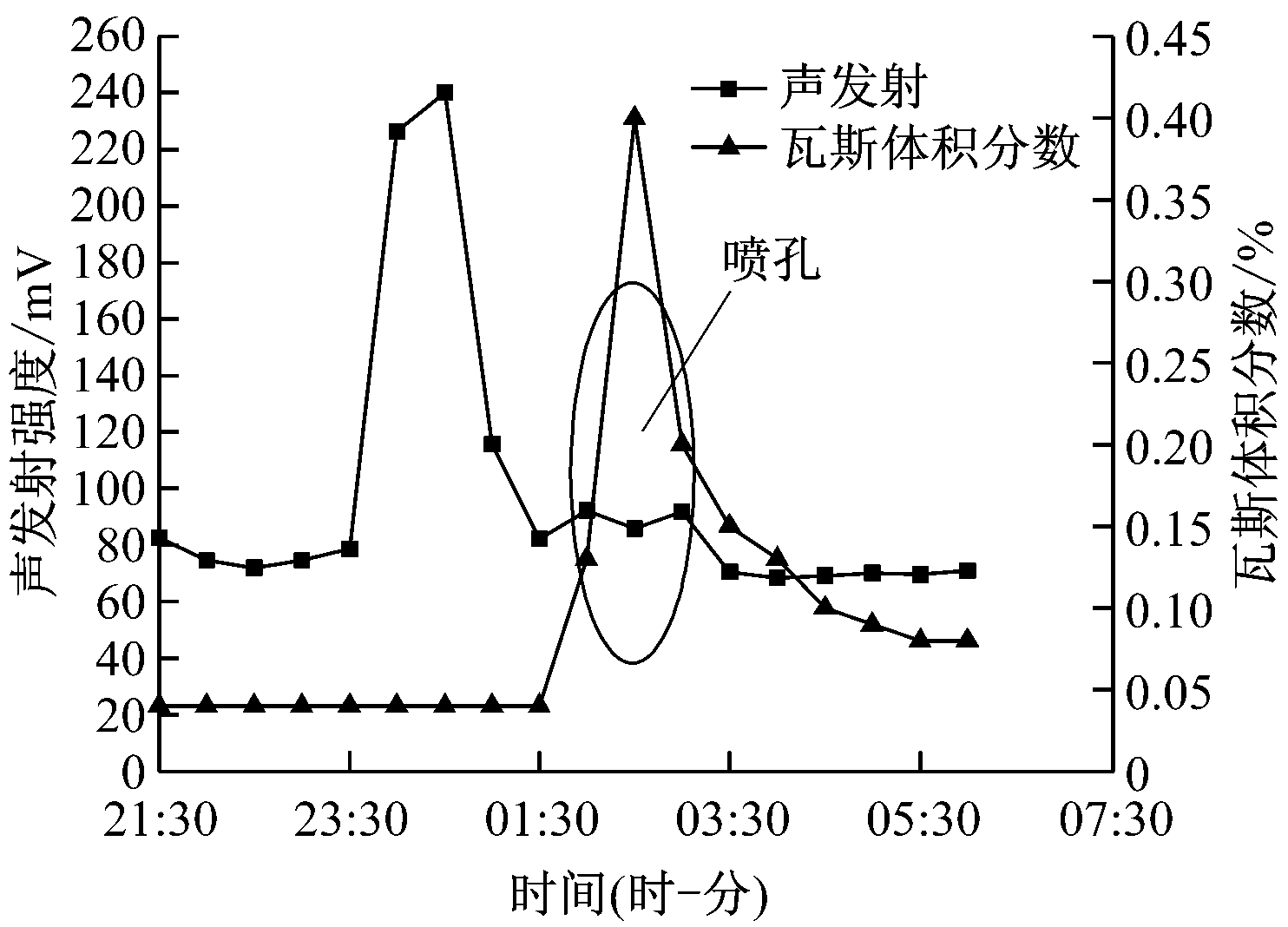 2.1 瓦斯喷孔发生前后声发射响应规律