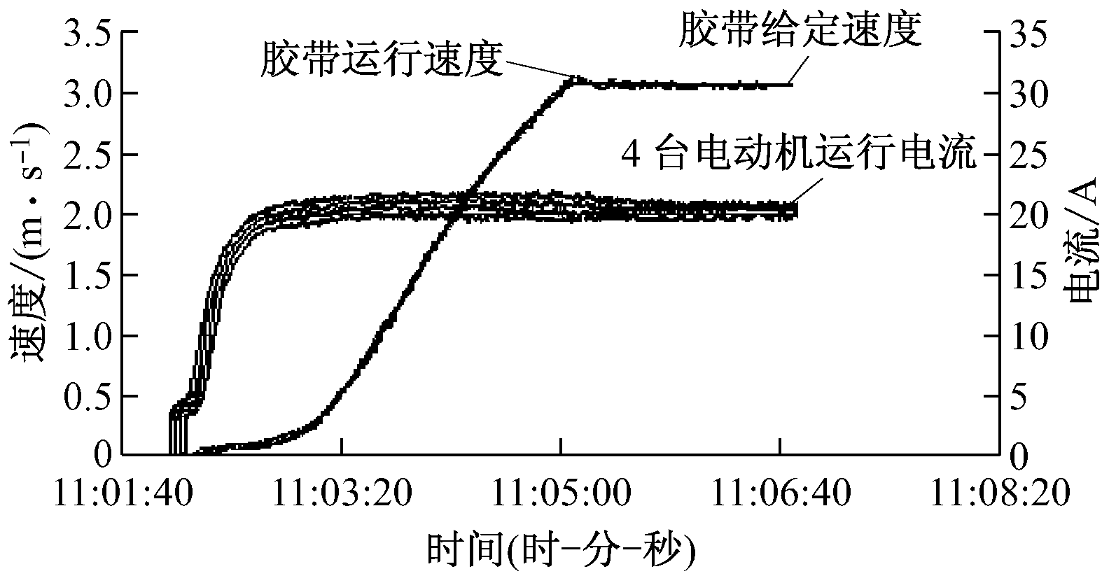 图7 带式输送机速度与电动机电流曲线