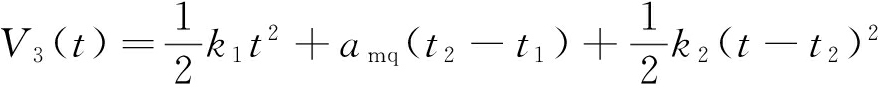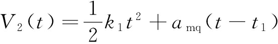 式中:V1为0~t1段速度,m/s;k1为0~t1段加速度的变化率,m/s3;V2为t1~t2段速度,m/s;amq为启动加速段最大加速度,m/s2;V3为t2~t3段速度,m/s;k2为t2~t3段加速度的变化率,m/s3。