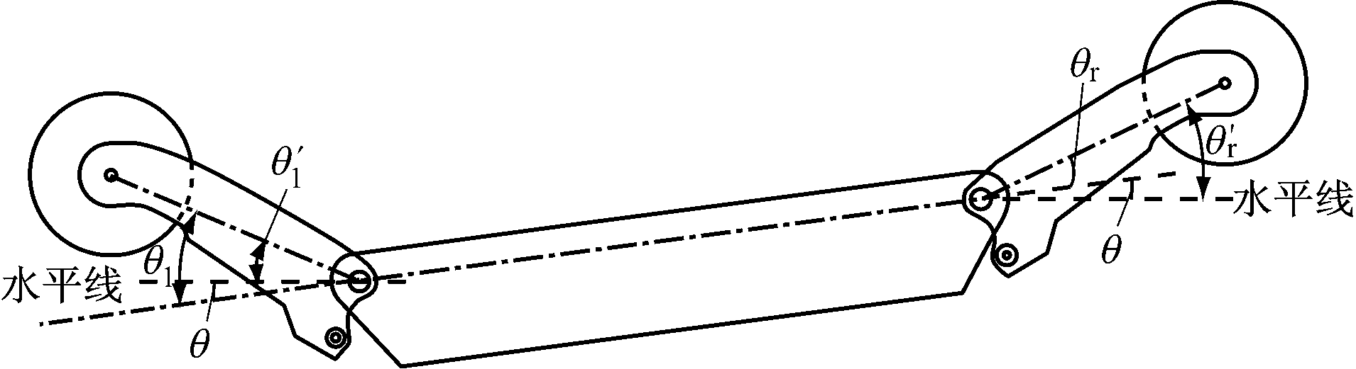 式中:θl 为左摇臂摆角(左摇臂摆动轴与机身的夹角);
