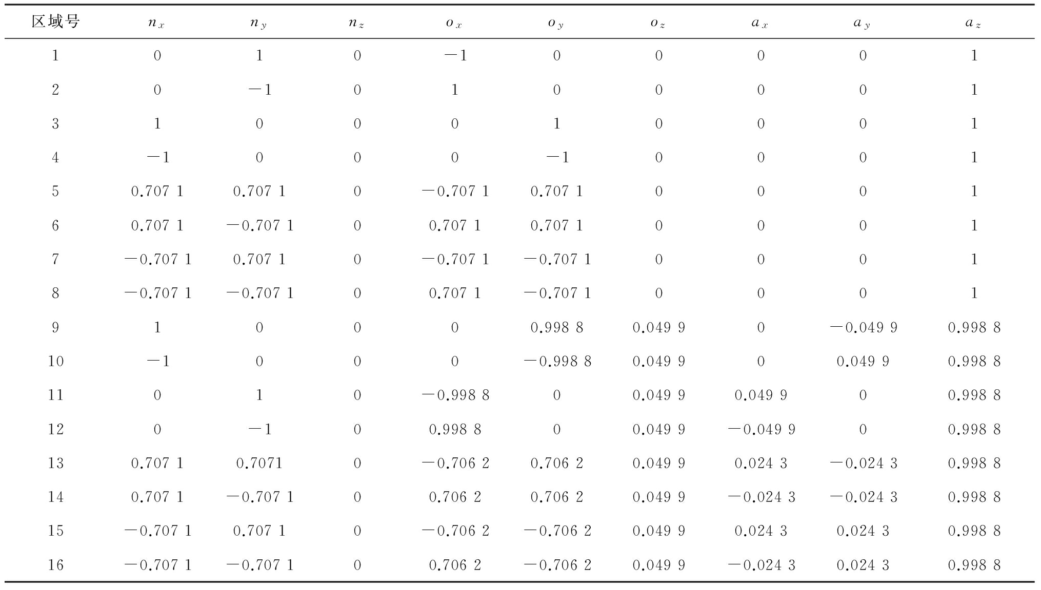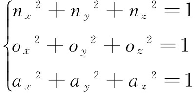 式中:nx,ny,nz分别为X6在Xu,Yu,Zu轴上的投影;ox,oy,oz分别为Y6在Xu,Yu,Zu轴上的投影;ax,ay,az分别为Z6在Xu,Yu,Zu轴上的投影。